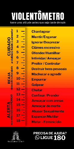 Ferramentas como o “violentômetro”, criado no México e difundido internacionalmente, também ajudam a visualizar essa escalada. Ele organiza comportamentos violentos em uma escala que vai de atitudes aparentemente sutis até situações de risco de morte.