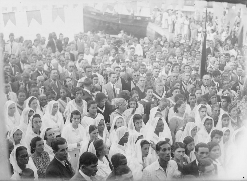 Foto: Procissão na Ponta D’ Areia. Inauguração da Igreja Nossa Senhora de Fátima. Créditos: Arquivo do Labhoi.