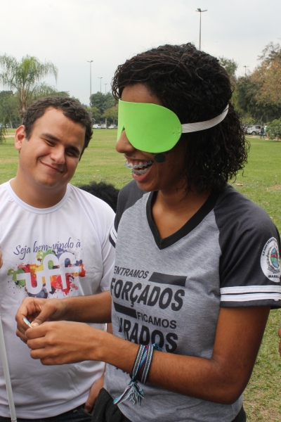 outras necessidades educacionais especiais na universidade. De acordo com a coordenadora, Lucília Machado, jornalista e funcionária da UFF há 34 anos, “estamos aqui para marcar o território e receber os estudantes com ou sem deficiência, falar do nosso trabalho, fazer uma oficina de sensibilização, na qual por alguns minutos a pessoa tem a experiência de se sentir cego ou de andar sobre rodas”. Para a advogada e servidora do Sensibiliza, Tatiana Mendonça, que, como Lucília, também é deficiente, “é importante dizer para o aluno que nós existimos, que estamos aqui e que ele pode nos procurar”.