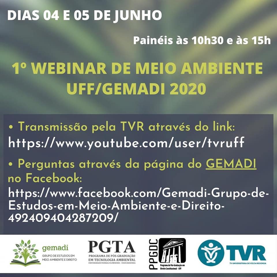 O Gemadi – Grupo de Estudos em Meio Ambiente e Direito, vinculado ao Departamento de Direto do ICHS (Instituto de Ciências Humanas e Sociais) da Universidade Federal Fluminense, em Volta Redonda realiza o Primeiro Webnar de Meio Ambiente.