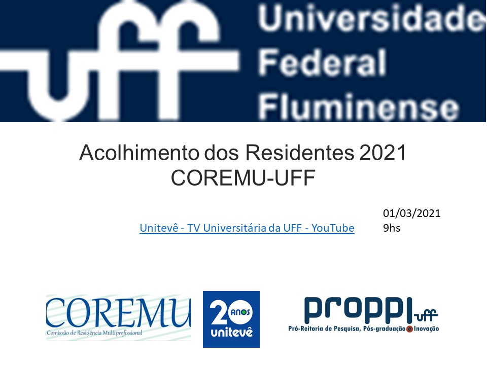 Acolhimento dos Residentes da COREMU 2021-Abertura e apresentação dos coordenadores membros da COREMU -Apresentação dos programas de Residência -Apresentação da professora Aldira Samantha Finalização do evento. Solenidade