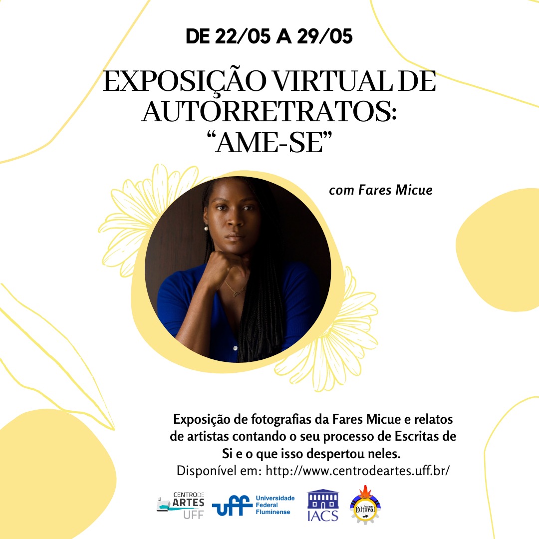 Seguindo nossos objetivos e valores de valorizar a arte, cultura e a saúde mental, nós do Ame-se também teremos uma incrível exposição de 17 fotografias autorretrato, com relatos de artistas contando seu processo de escritas de si e fotografias da incrível artista internacional Fares Micue, que estarão disponíveis no site do Centro de Artes UFF.