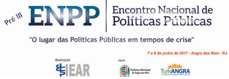 O Instituto de Educação de Angra dos Reis (IEAR), campi regional da Universidade Federal Fluminense, realizará nos dias 7 e 8 de junho, o Pré III Encontro Nacional de Políticas Públicas (ENPP), com a temática ‘O lugar das Políticas Públicas em tempos de Crise’. O evento é a etapa preparatória do III Encontro Nacional de Políticas Públicas, que será realizado em 2018, em universidade ainda a ser definida.