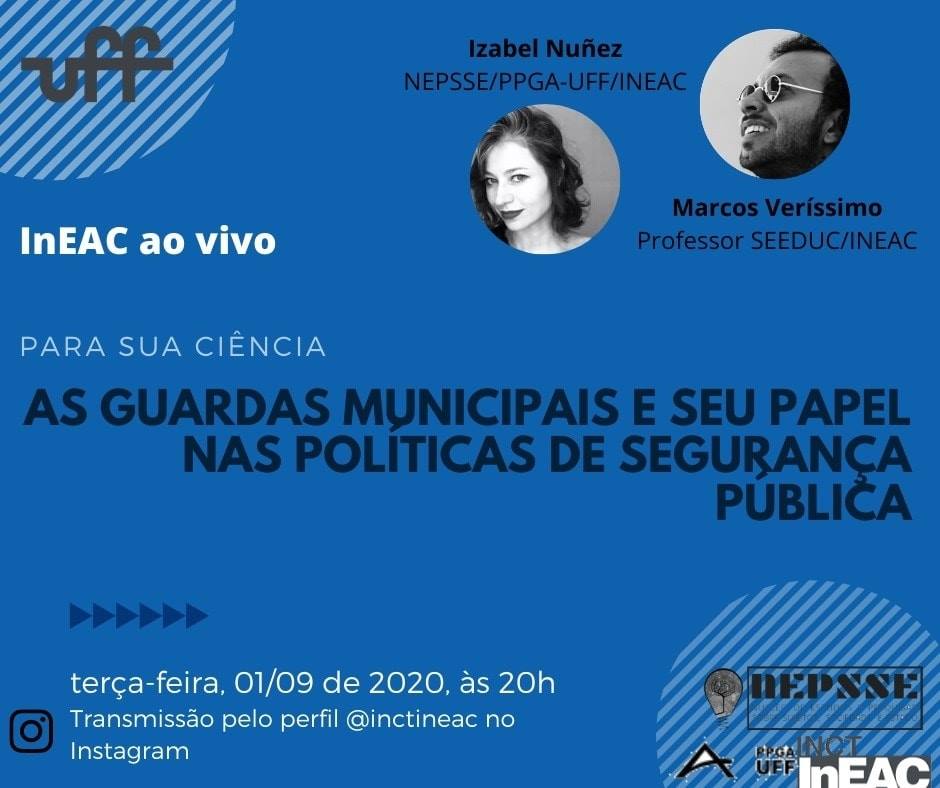 Izabel Nuñez (NEPSSE/PPGA-UFF/INEAC) recebe nesta terça-feira, 01.09, o professor Marcos Veríssimo (SEEDUC/INEAC) para falar sobre o tema “As guardas municipais e seu papel nas políticas de segurança pública”.