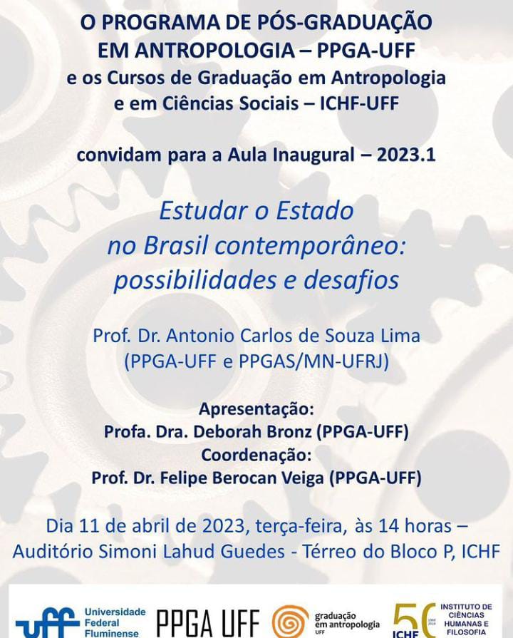 O Programa de Pós-Graduação em Antropologia e os cursos de graduação em Ciências Sociais e Antropologia da Universidade Federal Fluminense realizarão uma aula inaugural no dia 11 de abril de 2023, a partir das 14 horas no Auditório Simoni Lahud Guedes, no Instituto de Ciências Humanas e Filosofia. O evento que discutirá as possibilidades e desafios acerca dos estudos sobre o Brasil Contemporâneo será apresentado pela professora e doutora do Programa de Pós-Graduação em Antropologia e coordenado pelo professor e doutor Felipe Berocan Veiga, também do PPGA-UFF.