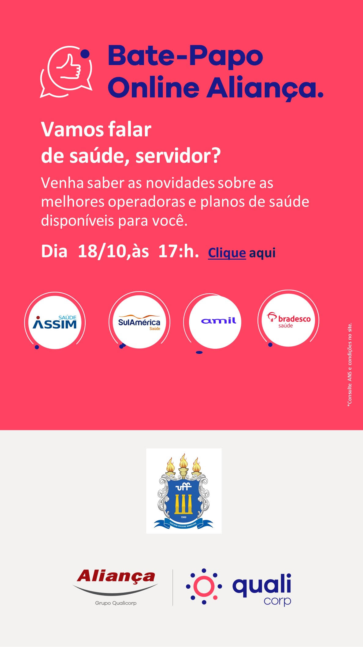 Comunicamos que por meio do convênio firmado entre MEC – UFF e Aliança/Qualicorp, os servidores ligados a este órgão contam com a oferta dos planos de saúde da Sulamérica, Assim Saúde, Bradesco e Amil.