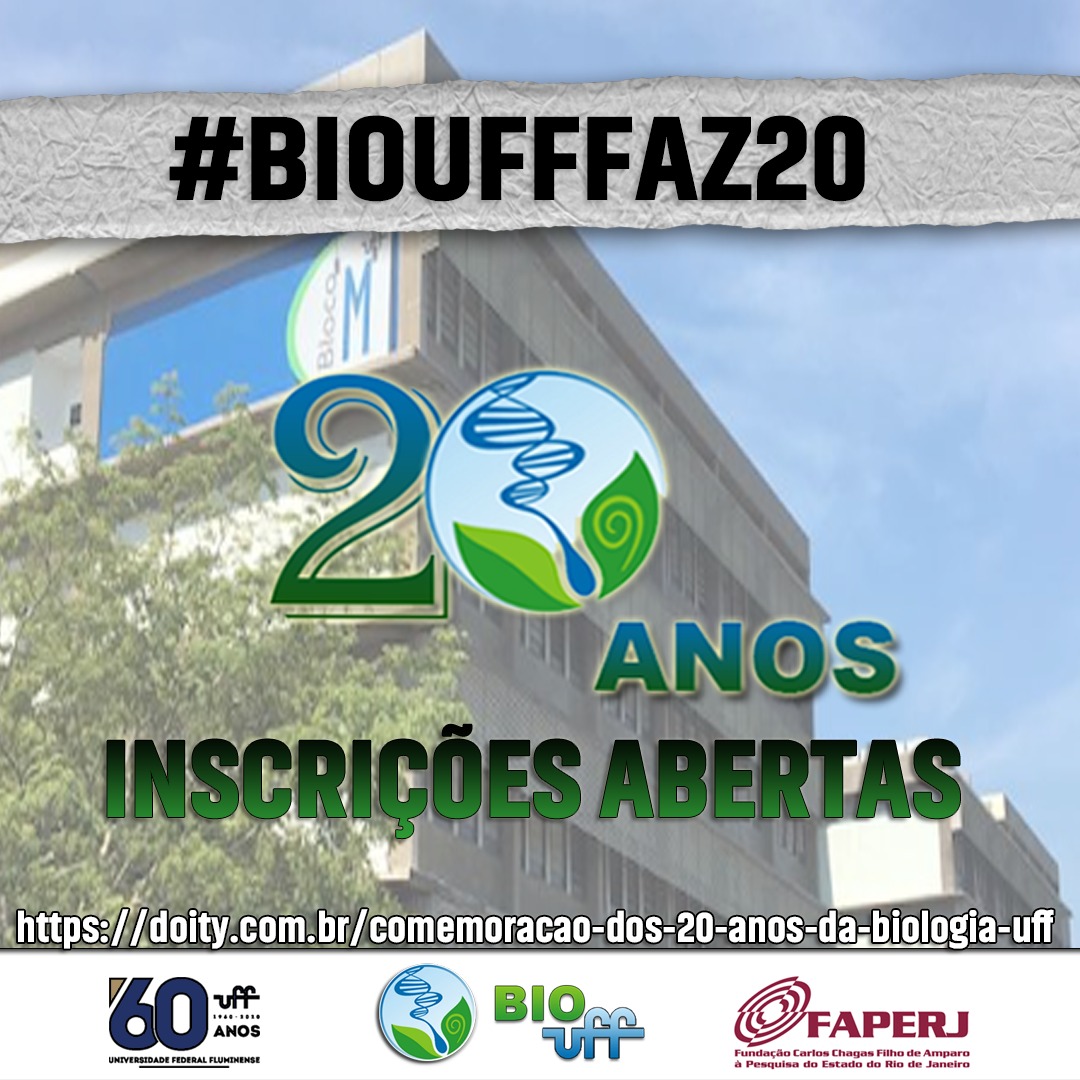 Link de inscrição: https://doity.com.br/comemoracao-dos-20-anos-da-biologia-uff