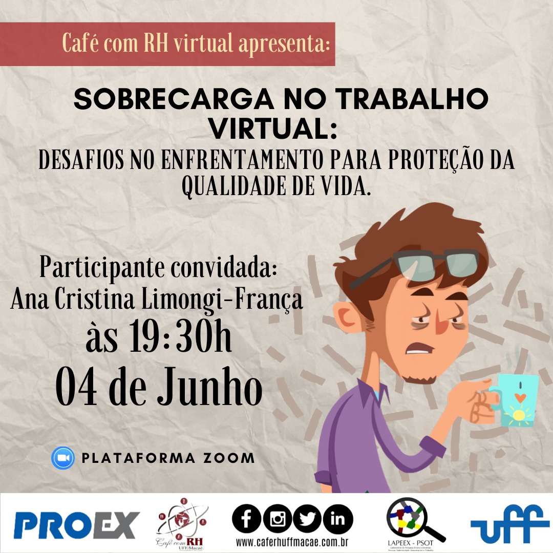 Inscrições até 02/06 as 18hs. Enviaremos os emails com todas informações para entrada na sala virtual do Café com RH da UFF em Macaé no Zoom até dia 04/06 às 12hs.
