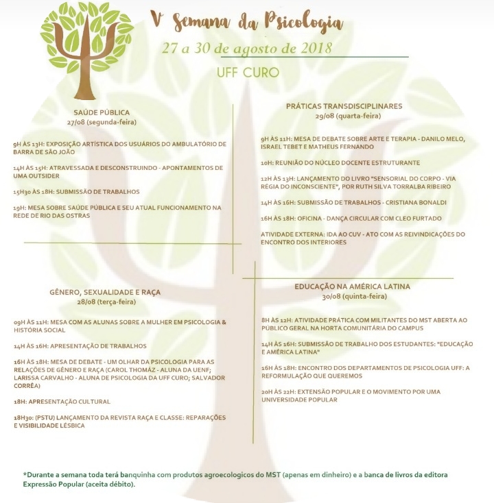 Saúde Pública, Gênero, sexualidade e Raça, Arte e terapia e Educação e América Latina são os temas que serão debatidos na 5ª Semana de Psicologia do Campus UFF de Rio das Ostras, promovida pelos alunos do Curso de Psicologia, do dia 27 a 30 de agosto.