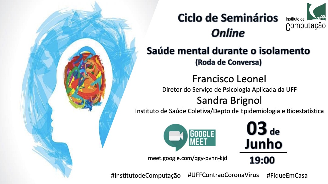 Roda de Conversa com o tema “Saúde mental durante o isolamento”, com o prof. Francisco Leonel — Diretor do Serviço de Psicologia Aplicada da UFF e a profa. Sandra Brignol — Instituto de Saúde Coletiva/Depto de Epidemiologia e Bioestatística.
