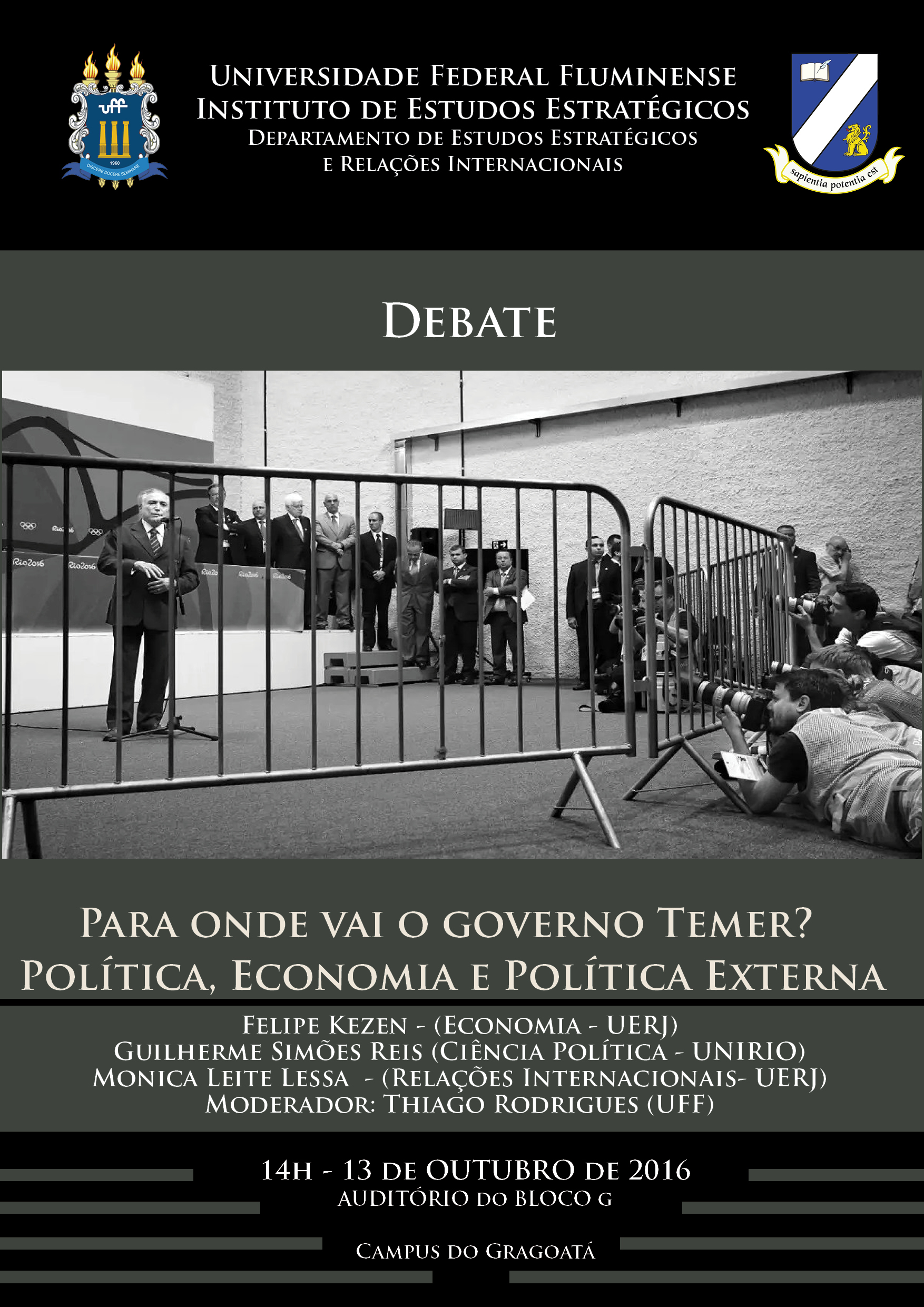 O Instituto Estudos Estratégicos da UFF organiza o debate Para onde vai o governo Temer? Política, economia e política externa.