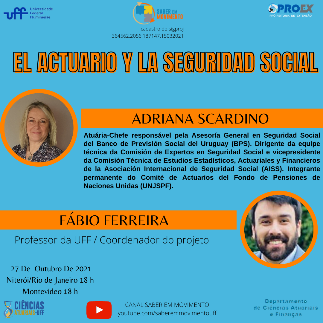 Assim, a conversa entre Fábio Ferreira (Depto de Ciências Atuariais e Finanças/UFF) e Adriana Scardino (Banco de Previsión Social del Uruguay/BPS) trata de questões relacionadas à Previdência Social, inseridas nos contextos latino-americano e da Seguridade Social.