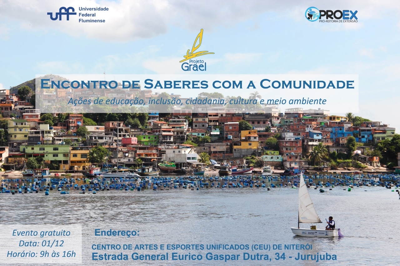 O Encontro de Saberes: UFF, Projeto Grael e Jurujuba tem entre seus objetivos desenvolver ações de educação, inclusão, cidadania, cultura e meio ambiente, a partir de processos reflexivos sobre as relações entre educação, cultura, saúde, meio ambiente, direitos humanos, inclusão e assistência social como forma de melhor entender seu entorno e assim assumir o protagonismo dentro de sua comunidade, construindo processos de aproximação da comunidade local com as atividades da Universidade, propiciando assim a melhoria das condições de vida da população.
