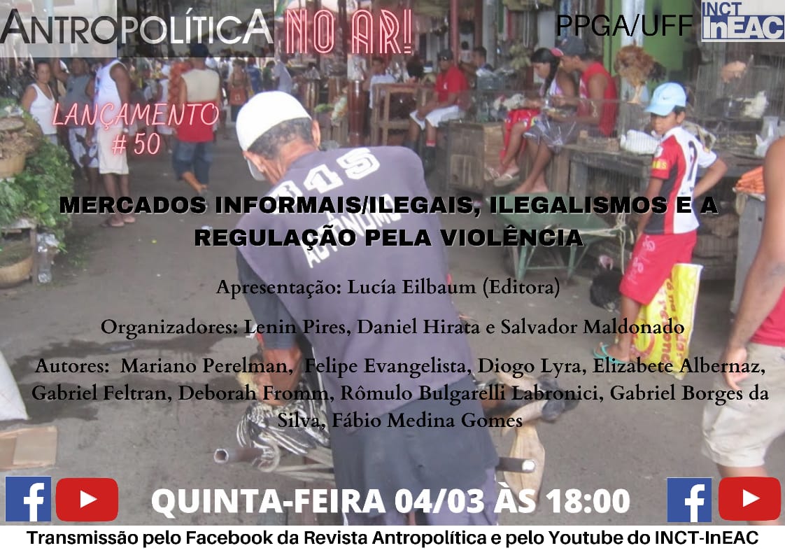 O debate dessa edição estará focado no tema do dossiê “Mercados Informais/Ilegais, Ilegalismos e Regulação pela Violência”, publicado no número 50, e contará com a presença dos organizadores do dossiê, os professores Lenin Pires (UFF), Daniel Hirata (UFF) e Salvador Maldonado (Colmich). Também teremos a participação dos autores dos artigos que compõem o Dossiê.