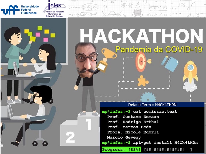 A Comissão Organizadora realizou no dia 23/06 o evento – Hackathon no Isolamento Social: Combate à Pandemia da COVID-19. O objetivo principal é despertar nos alunos o interesse por disciplinas voltadas a área da programação, através de uma atividade que envolve desafio, engenhosidade e competição saudável. Na competição foram utilizados também dados reais, de DNAs de patógenos. Mais informações sobre o desafio podem ser obtidos pelo site http://www.semaan.info/hack. Além dos discentes da UFF, foram convidados grupos de outras instituições, como CEDERJ, FAETEC, UERJ, IFF de Santo Antônio de Pádua, e Faculdade Metodista Granbery. A diversidade do Pódio comprova a integração entre instituições, mesmo em tempos de isolamento social! Parabéns aos participantes! Comissão organizadora formada pelos professores Gustavo Semaan (presidente), Marcos Bedo, Rodrigo Erthal e Nicole Ederli.