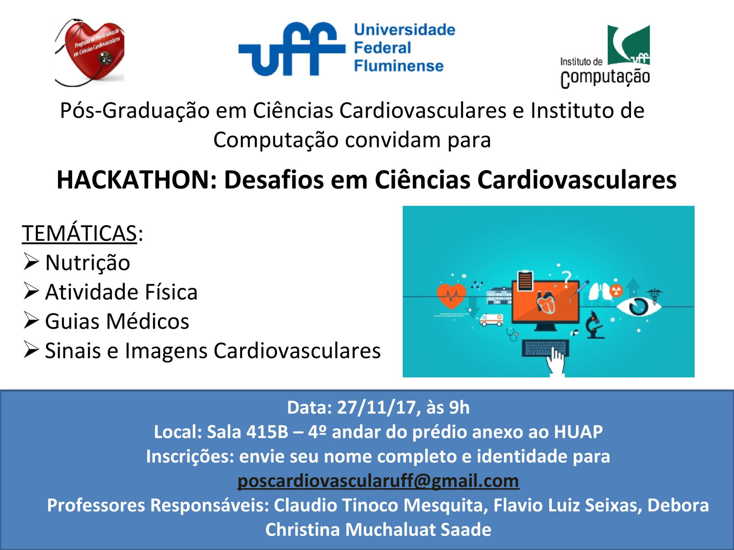 O Hackathon organizado pela Pós-Graduação em Ciências Cardiovasculadores da UFF reunirá programadores, professores e alunos de diversas áreas, incluindo especialistas da área de saúde, ligados à área de Ciências Cardiovasculares, em torno de desafios da área que podem ser tratados através de soluções tecnológicas que envolvam sistemas de computação.