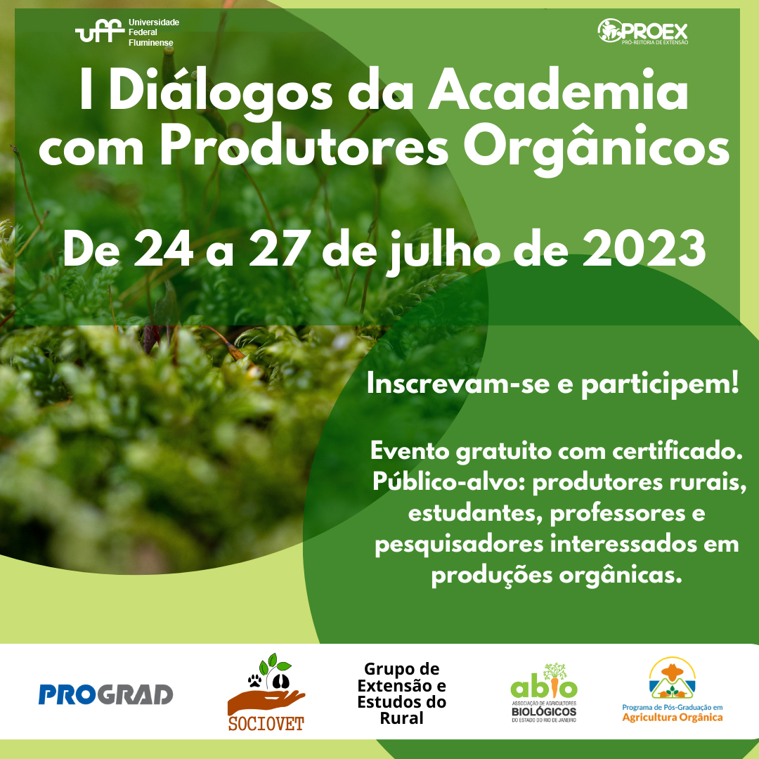 O I Diálogos da Academia com Produtores Orgânicos é um evento organizado pelo Laboratório Sociedade e Medicina Veterinária (SOCIOVET) em parceria com a Associação de Produtores Biológicos do Estado do Rio de Janeiro (ABIO-RJ) e com o Programa de Pós-Graduação em Agricultura Orgânica (PPGAO/UFRRJ) que visa atender a demanda dos produtores vinculados ao SPG/ABIO de Cachoeiras de Macacu trazendo oficinas e palestras que tratam de temas relacionados à produção animal e vegetal orgânicas. O evento tem como público-alvo produtores rurais, estudantes, professores e pesquisadores interessados no tema.