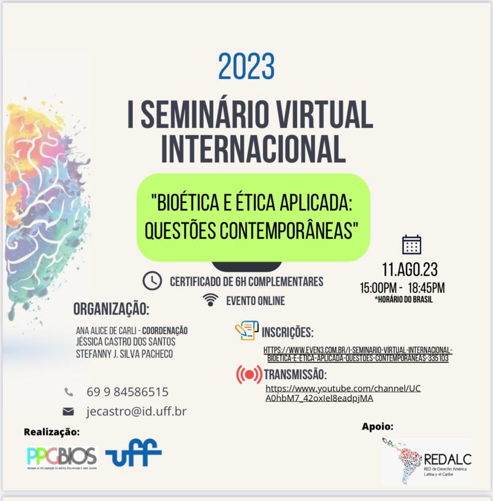 O I Seminário Virtual Internacional “Bioética e Ética Aplicada: questões contemporâneas”, contará com a participação de estudiosos de âmbito nacional e internacional das áreas de Bioética e da Ética Aplicada, e, bem assim, de outros temas cujo saberes se interconectam.