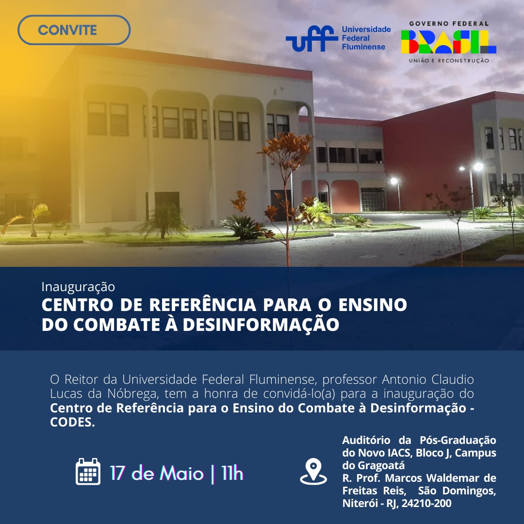 A UFF, por iniciativa do Instituto Nacional de Ciência e Tecnologia em Disputas e Soberanias Informacionais (INCT/DSI), está inaugurando, neste mês de maio, o Centro de Referência para o Ensino do Combate à Desinformação (Codes), que busca sistematizar os estudos de desinformação no país.