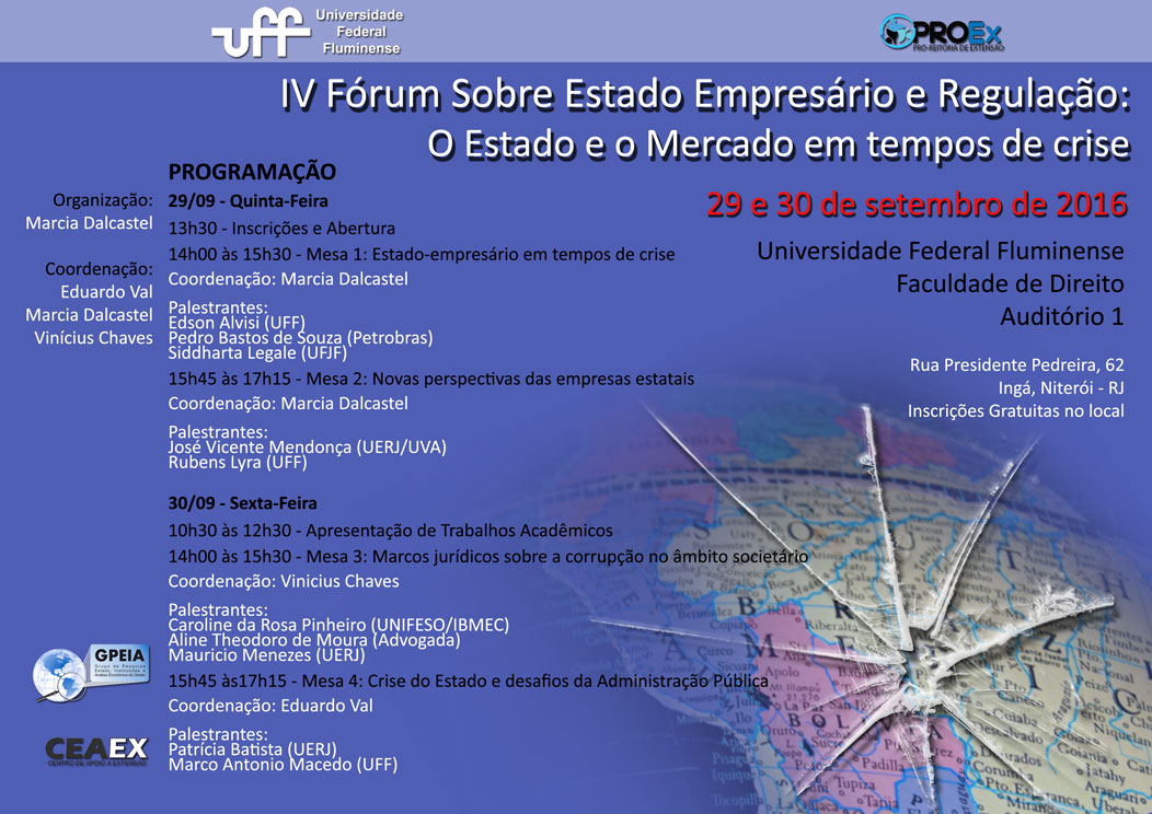 IV Fórum sobre Estado Empresário e Regulação: O Estado e o Mercado em tempos de crise29/09/2016 - 30/09/2016