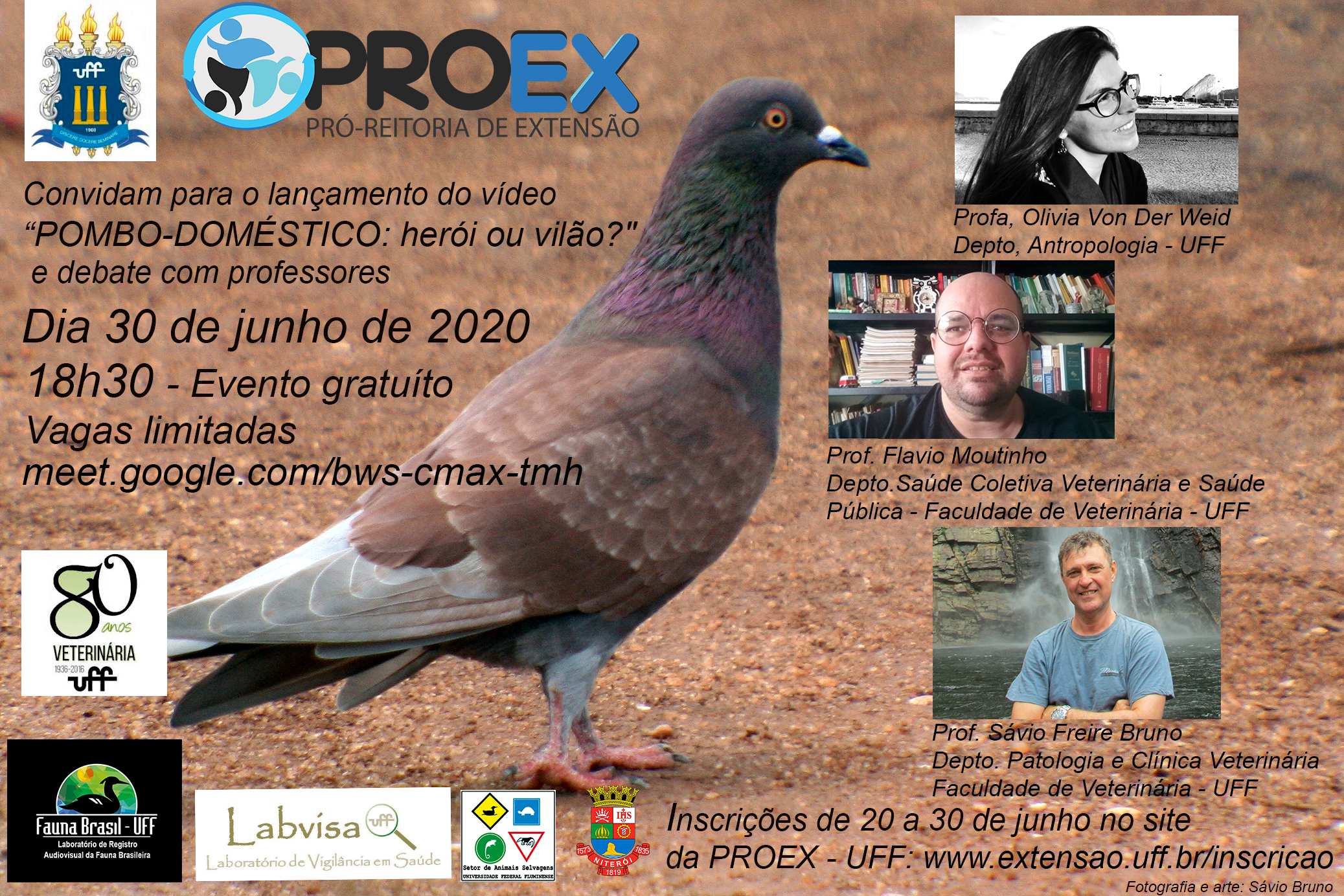 A Pró-Reitoria de Extensão convida toda a comunidade acadêmica e demais interessados para o lançamento do vídeo “Pombo-doméstico: herói ou vilão?” e posterior debate com professores convidados sobre o tema.