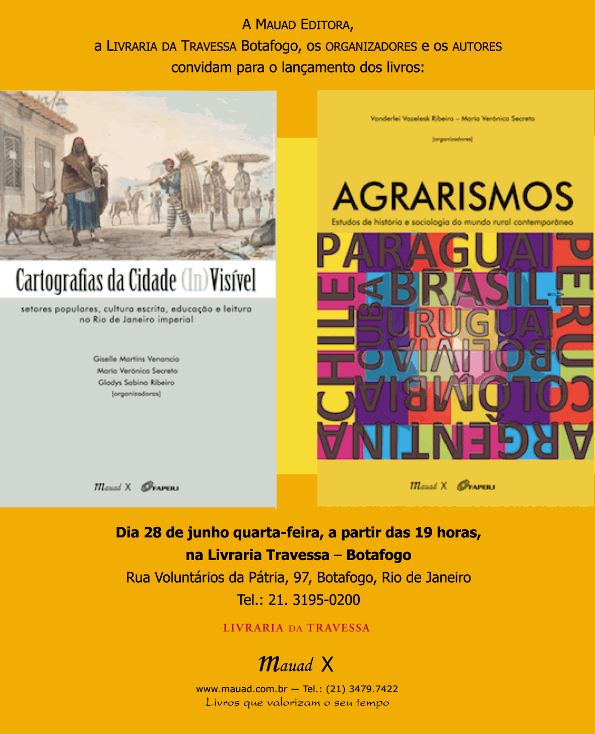 “Cartografias da cidade (in)visível – Setores populares, cultura escrita, educação e leitura no Rio de Janeiro imperial” foi organizado por três docentes do Programa de Pós-graduação em História da Universidade Federal Fluminense. Nesta obra questiona-se a reafirmada exclusão e distanciamento dos setores populares do mundo letrado, demonstrando que suas práticas letradas encontram-se inscritas nas ruas da cidade e nos modos como se relacionavam com a vida, com o trabalho e com a educação. Deste modo, foi cartografado um Rio de Janeiro pouco visível: aquele que se constitui pelos espaços de cultura letrada em que se inseriam os pobres urbanos.