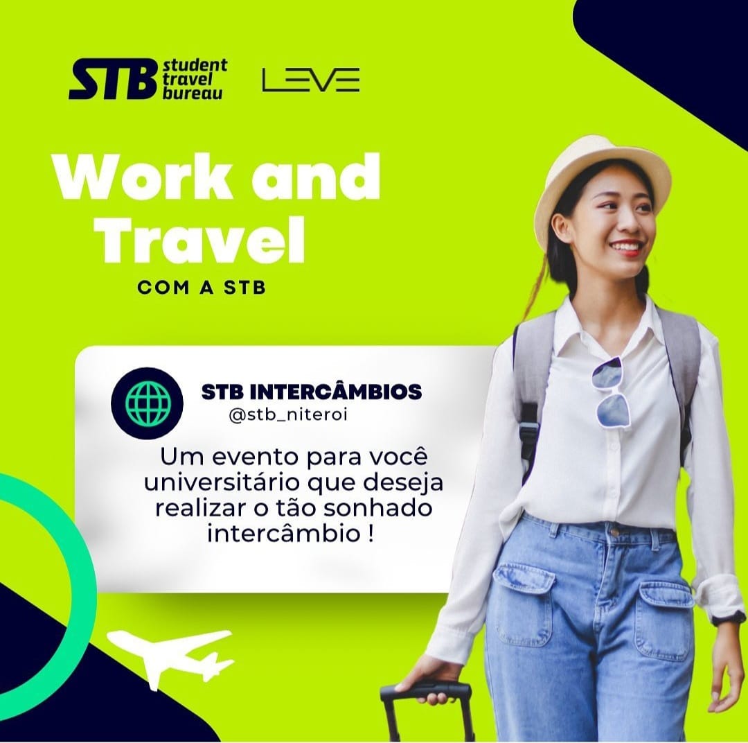 A Leve Consultoria, empresa júnior do curso de graduação em Turismo e Hotelaria da Universidade Federal Fluminense, em parceria com a STB Niterói, apresenta no dia 6 de junho de 2023, o evento sobre o “Work and Travel”, programa de intercâmbio direcionado aos universitários brasileiros que desejam trabalhar nos Estados Unidos adquirindo experiências culturais, crescimento pessoal e desenvolvimento profissional, remuneradamente.