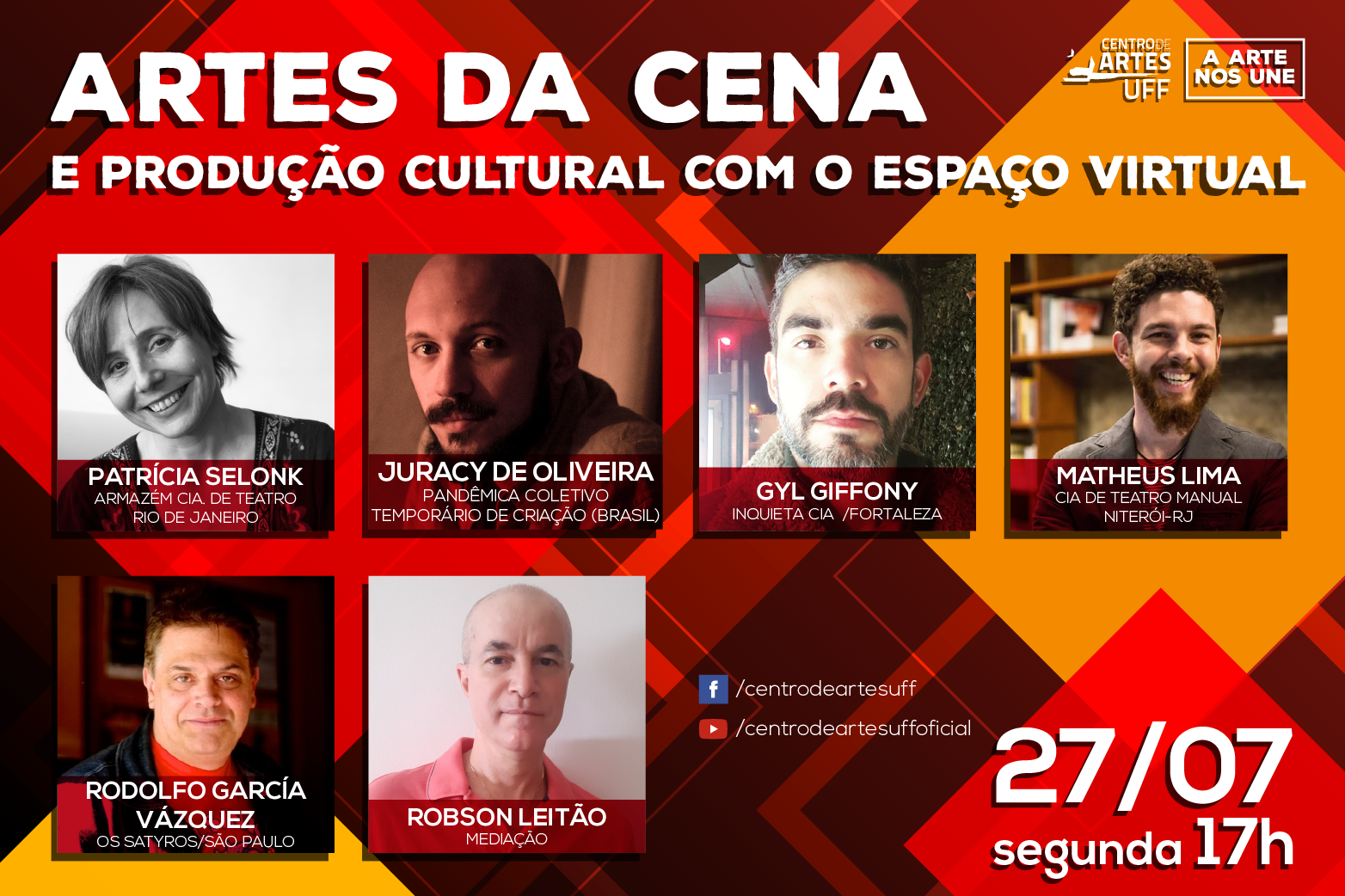 A conversa será transmitida pelo Facebook e YouTube do Centro de Artes UFF e terá como participantes:
