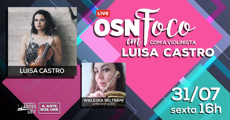 Na próxima sexta-feira, dia 31 de julho, às 16h, a Orquestra Sinfônica Nacional – UFF realiza mais uma edição da série de lives “OSN em Foco”. Na série, Waleska Beltrami, trompista da Orquestra, conversa com a violinista Luisa Castro, concertino da OSN. Luiza contará um pouco sobre sua trajetória de formação, projetos de pesquisa, processo performático e criativo, além de curiosidades sobre a carreira.