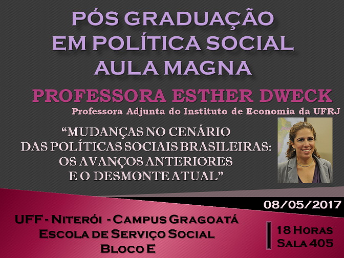 Pós- Graduação em Política Social promove aula magna sobre ” Mudanças no cenário das políticas brasileiras: os avanços anteriores e o desmonte atual”, com a professora adjunta do Instituto de Economia da UFRJ Esther Dweck.