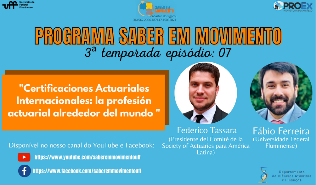 #ProexEmAção divulga em parceria com o projeto de extensão  Saber em Movimento coordenado pelo professor Fábio Ferreira  – UFF, a Live “Certificaciones Actuariales Internacionales: la profesión actuarial alrededor del mundo ”
