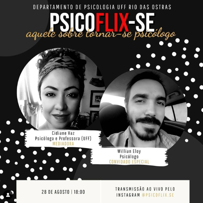 A live acontecerá às 18h no @psicoflix.se com a mediação da professora de Psicologia da UFF Rio das Ostras, Cidiane Vaz.