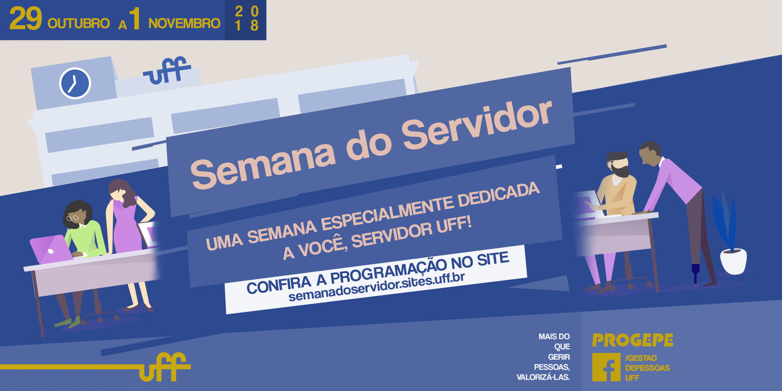 Em comemoração ao Dia do Servidor Público Federal, celebrado em 28 de outubro, a Universidade Federal Fluminense organiza, pela primeira vez, uma semana especialmente dedicada a você, servidor UFF!