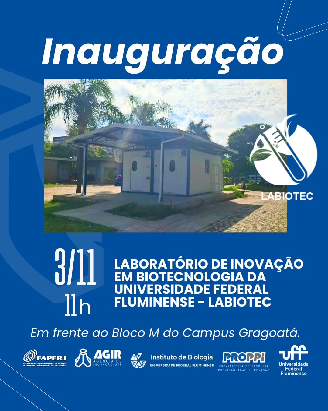 A UFF realiza, no dia 3 de novembro, às 11h, a inauguração do Laboratório de Inovação em Biotecnologia (Labiotec), uma nova estrutura voltada ao desenvolvimento de pesquisas e projetos de inovação tecnológica na área de biotecnologia.