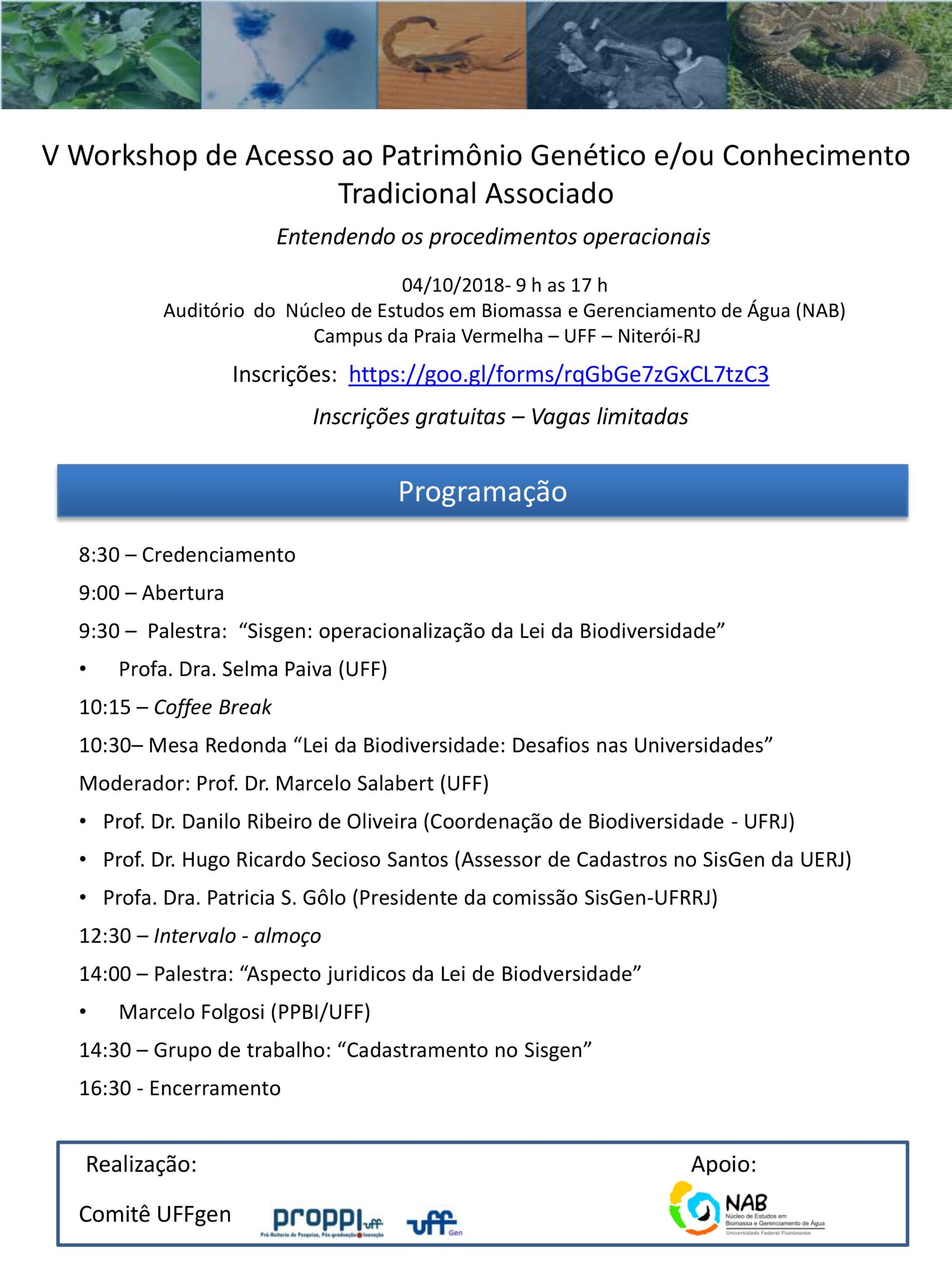O Comitê de Acesso ao Patrimônio Genético e Conhecimento Tradicional Associado (UFFGEN) convida para o evento: