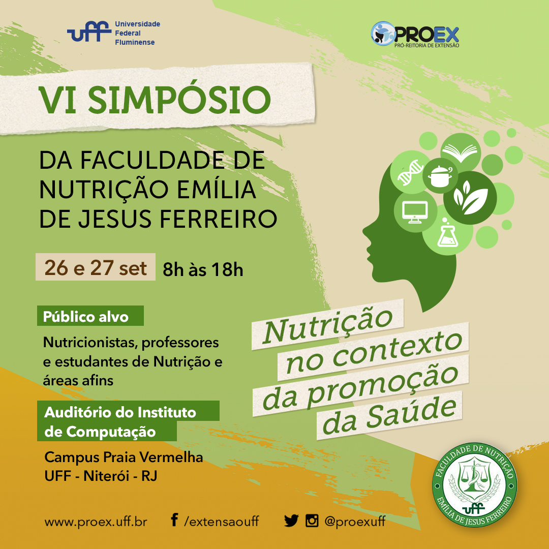 Em comemoração aos 55 anos da Faculdade de Nutrição Emília de Jesus Ferreiro, aos 20 anos do Centro de Referência em Soberania e Segurança Alimentar e Nutricional, acontece nos dias 26 e 27 de setembro, a 6ª edição do Simpósio da Faculdade de Nutrição no Instituto de Computação da Universidade Federal Fluminense.