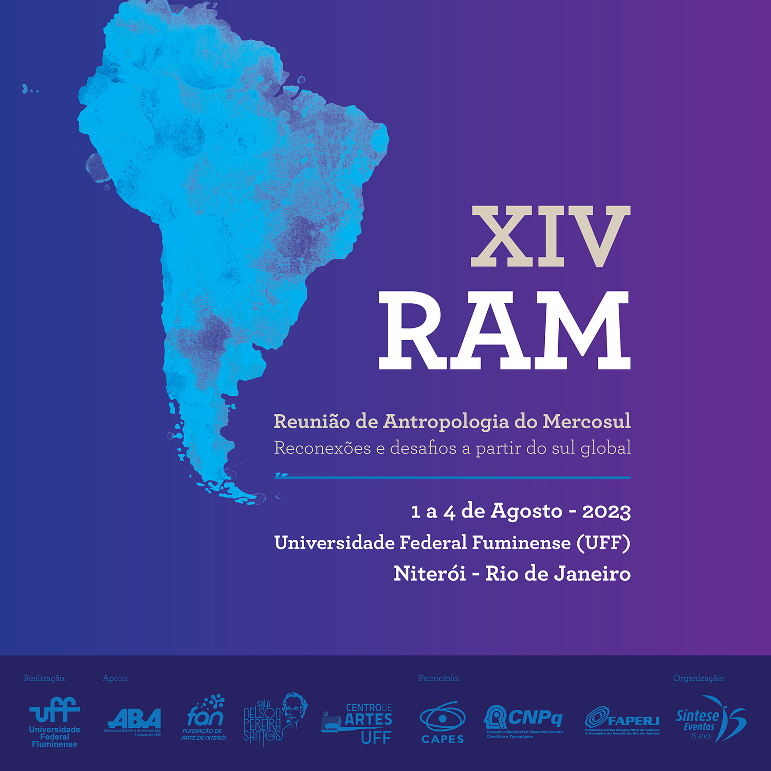 Desde 1995, o Congresso RAM acontece bienalmente e já foi sediado em nove cidades de três países da América Latina. Em pausa desde 2019 devido às questões de seguranças que envolveram o período pandêmico, o retorno também marca a primeira vez em uma universidade do sudeste brasileiro. A expectativa é de que o evento receba 2.500 pessoas durante os 4 dias, contando com conferências, minicursos, oficinas, palestras e debates. Confira a programação e outras informações no site da XIV Reunião de Antropologia do Mercosul.