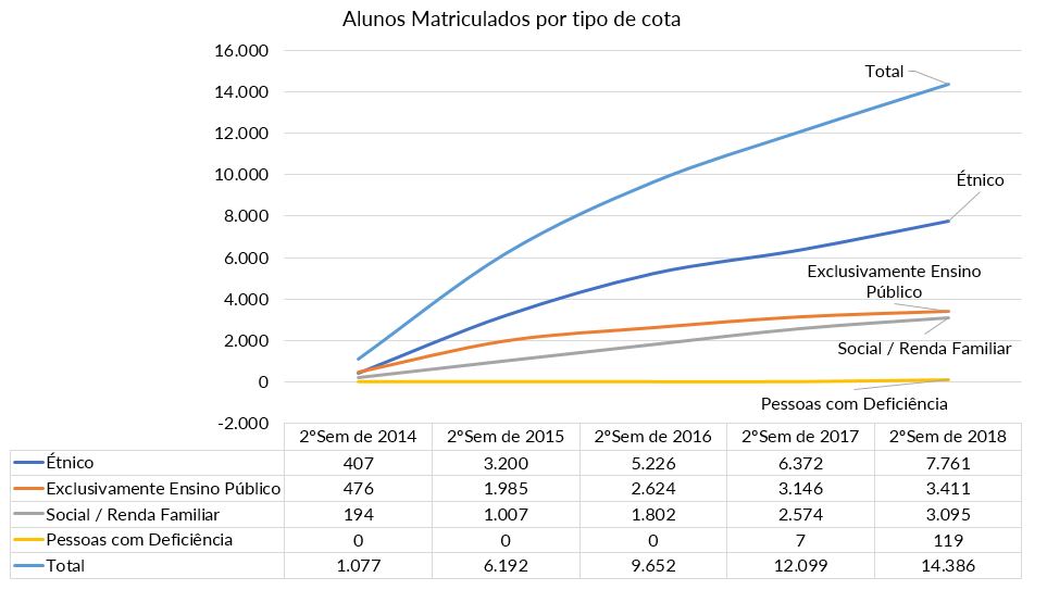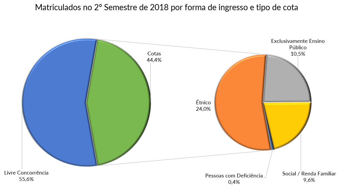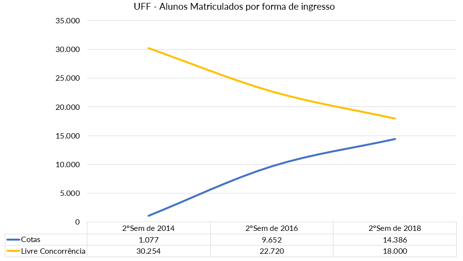 | No final do ano de 2016 a Lei 12.711 foi alterada pela Lei 13.409 de 28 de dezembro de 2016 que incluiu os alunos com deficiência. No segundo semestre de 2018 a UFF registrou 221 alunos com deficiência: 119 ingressantes via cotas e 102 através da livre concorrência. |