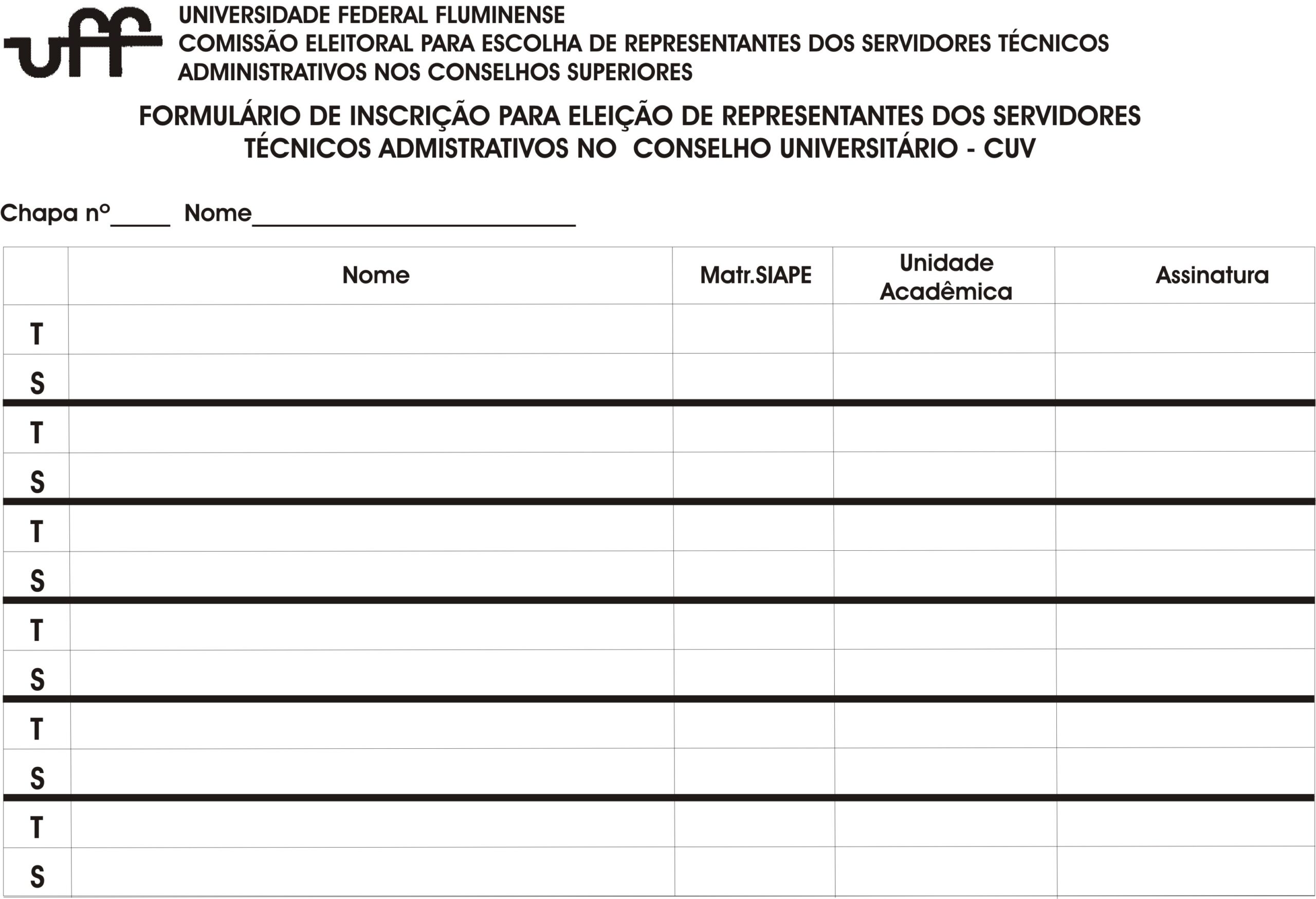 A Comissão Eleitoral para realização da Eleição dos Representantes dos Servidores Técnico-Administrativos nos Conselhos Superiores da Universidade Federal Fluminense torna público o Edital de Homologação das Chapas e a Instrução Normativa nº 001/201 referente a Normas de Propaganda.