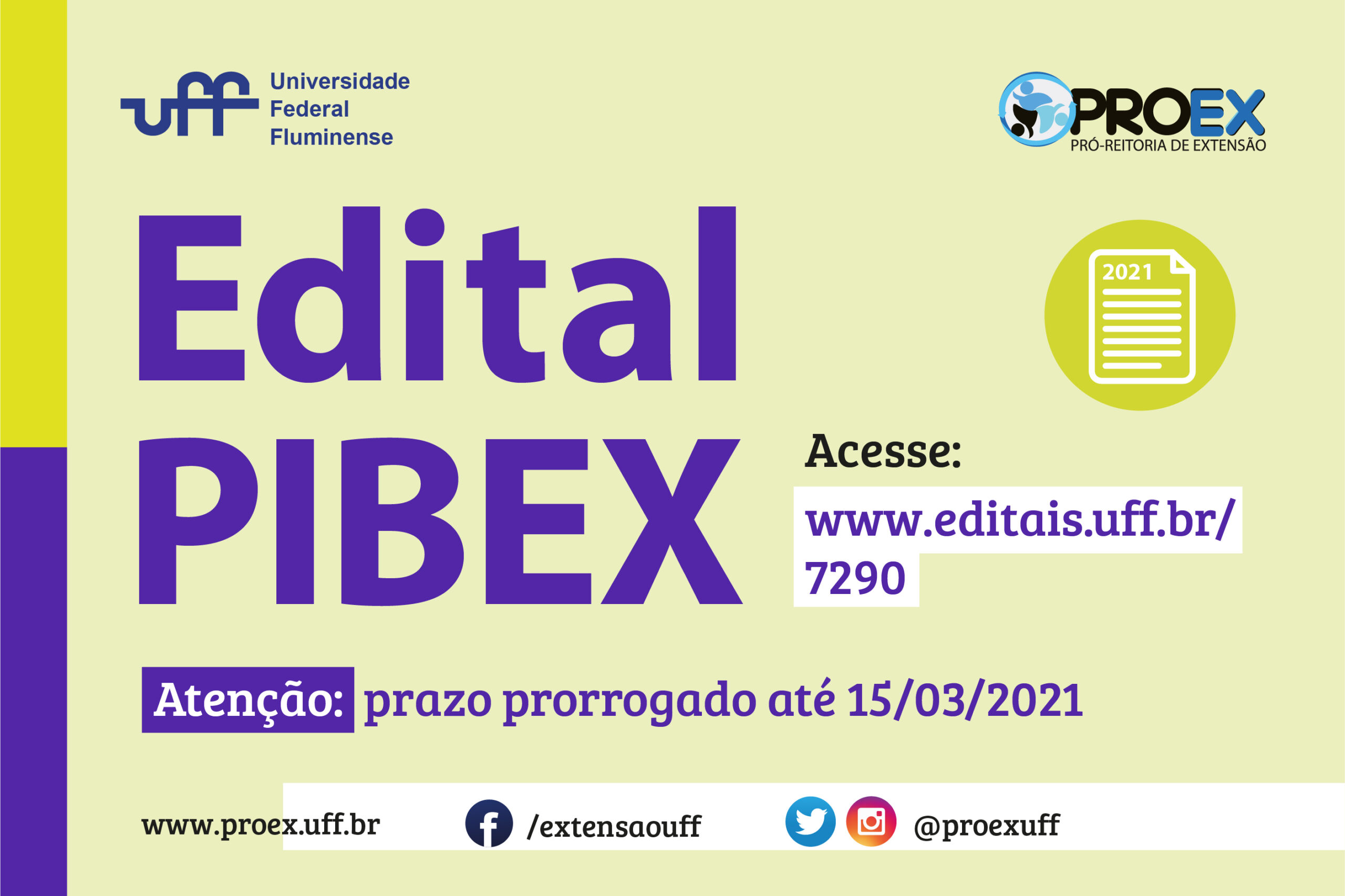 #ProexEmAção comunica que devido à situação atual de enfrentamento a pandemia do COVID-19, os prazos do cronograma publicado no Edital PIBEX 2021, foi alterado.