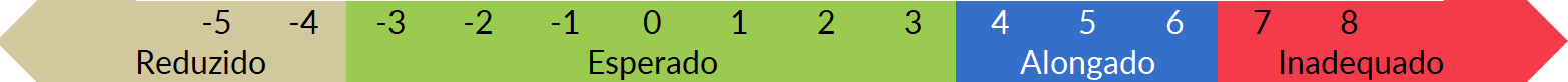 Alunos que se formam empregando entre 3 semestres a menos ou a mais do que a duração padrão do curso incluindo estes extremos. O valor ideal é que a diferença seja 0, que o aluno tenha uma trajetória exatamente igual a duração do curso definida pelo MEC. | ||