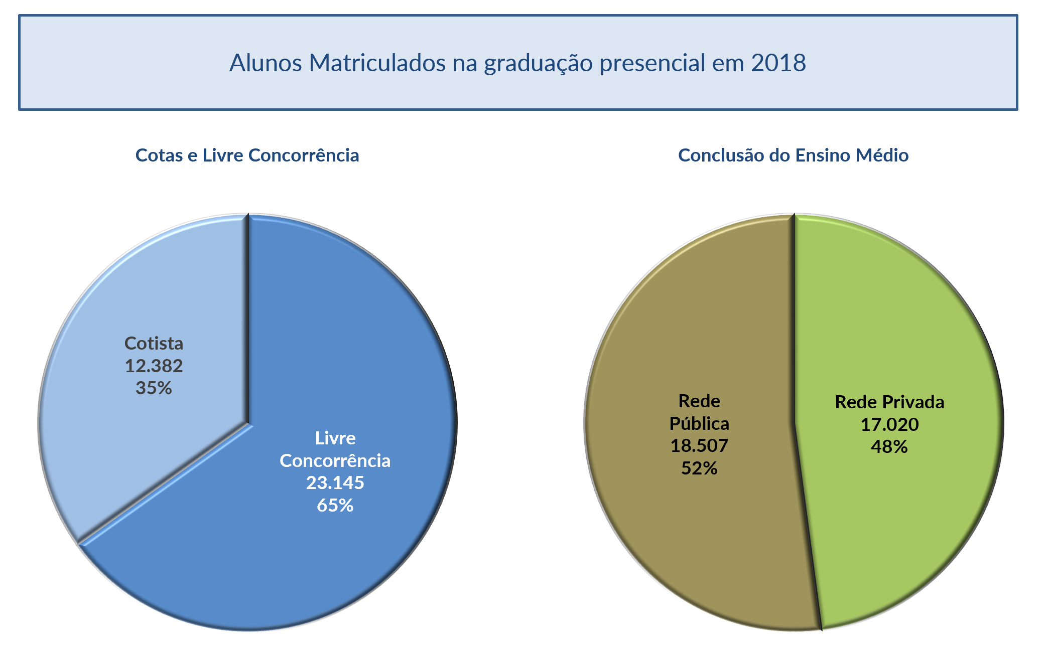 | Mais da metade dos alunos matriculados na UFF são oriundos de escola pública sendo que 35% são cotistas. | |||
