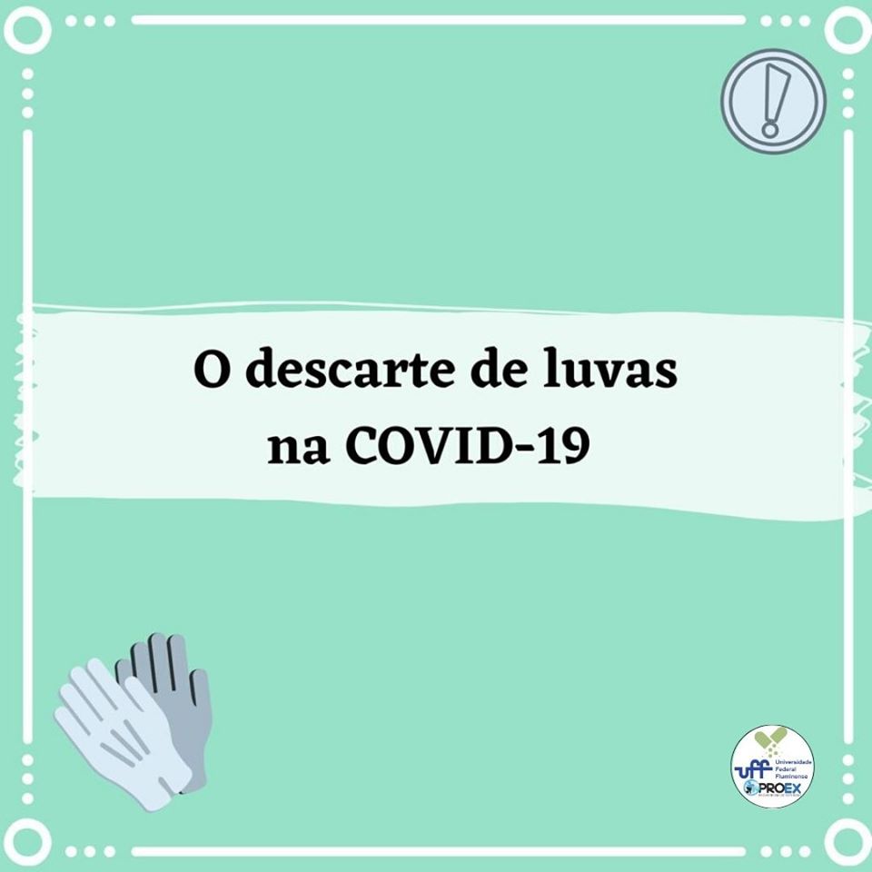 #ProexEmAção em parceria com o projeto de extensão DescartUFF informam que com o rápido avanço da ciência em reação à pandemia do COVID-19, o DescartUFF traz para vocês as últimas informações sobre mais uma medida preventiva que tem sido adotada por muitos brasileiros durante a pandemia: o uso de luvas de procedimentos (luvas de látex). Neste texto postado no site do projeto comentam sobre a forma correta de retirá-las e descartá-las.