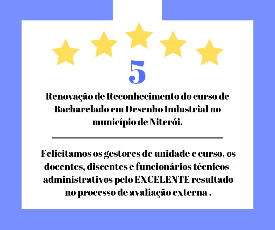Os resultados das avaliações externas conduzidas pelo MEC conferiram conceito 5 (excelente) aos cursos de Desenho Industrial e Hotelaria.