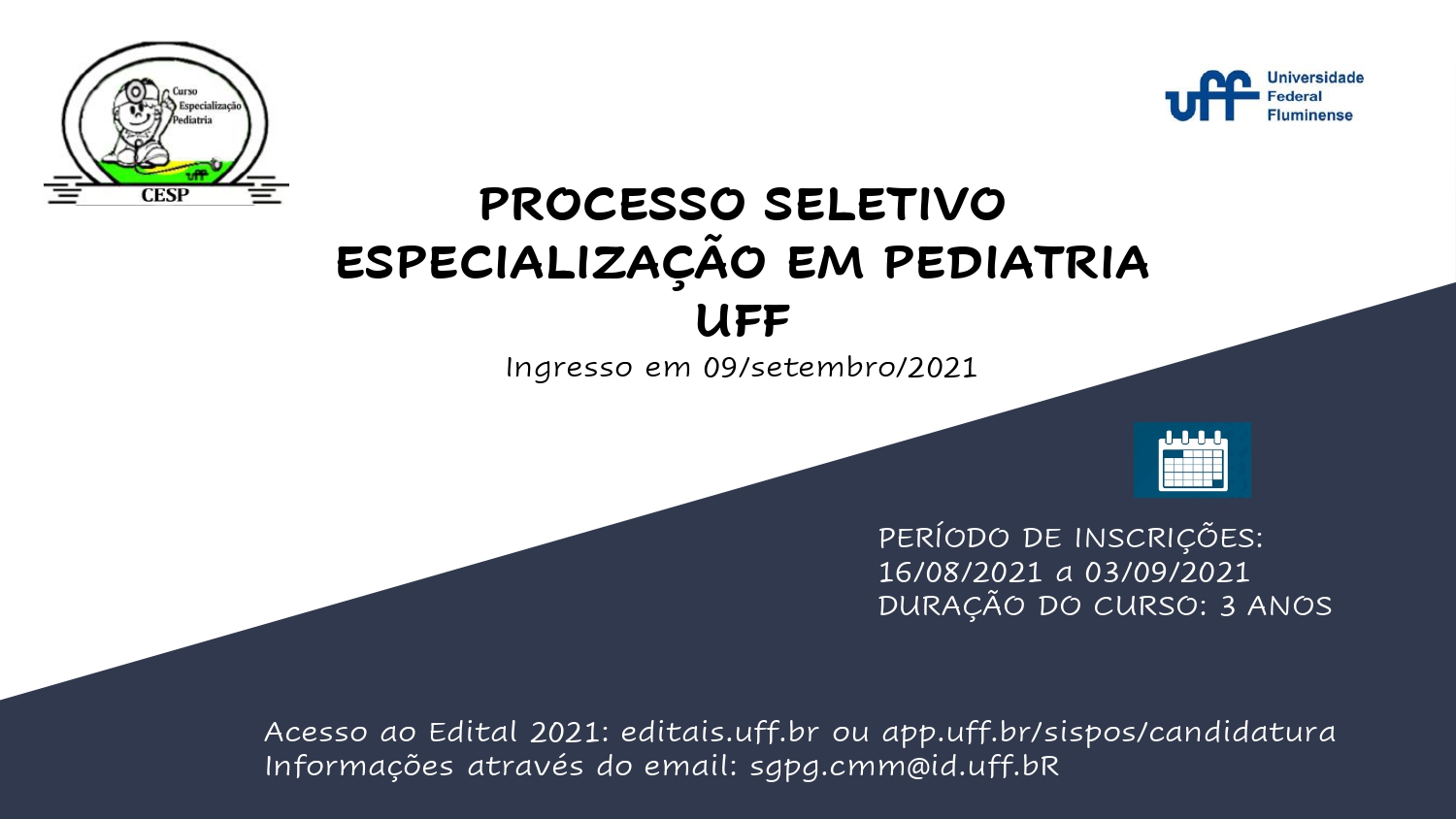 Inscrições para o concurso de preenchimento de vagas do Curso de Especialização em Pediatria referentes ao ano de 2021.
