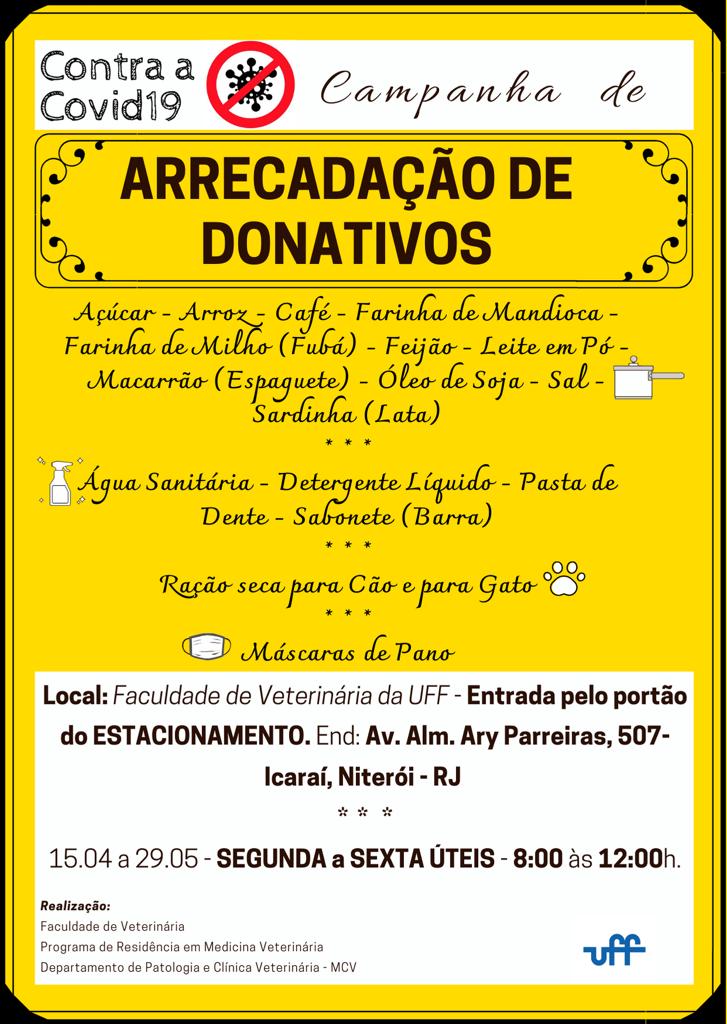 #ProexEmAção divulga em parceria com a Faculdade de Medicina Veterinária – UFF a campanha de donativos contra a COVID – 19. Participe!