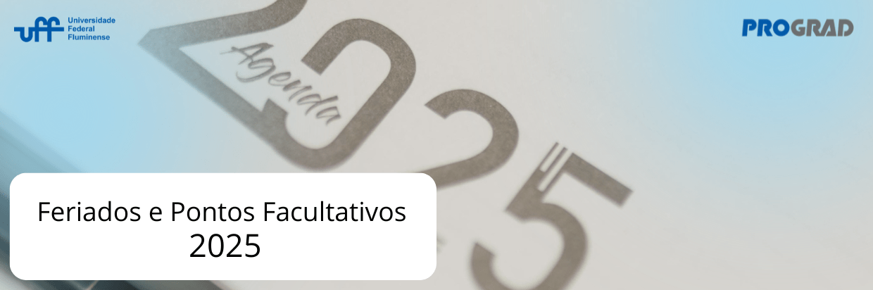 Confira publicações sobre tabelas de feriados e pontos facultativos, bem como Calendários Escolar e Administrativo da UFF, na página https://www.uff.br/