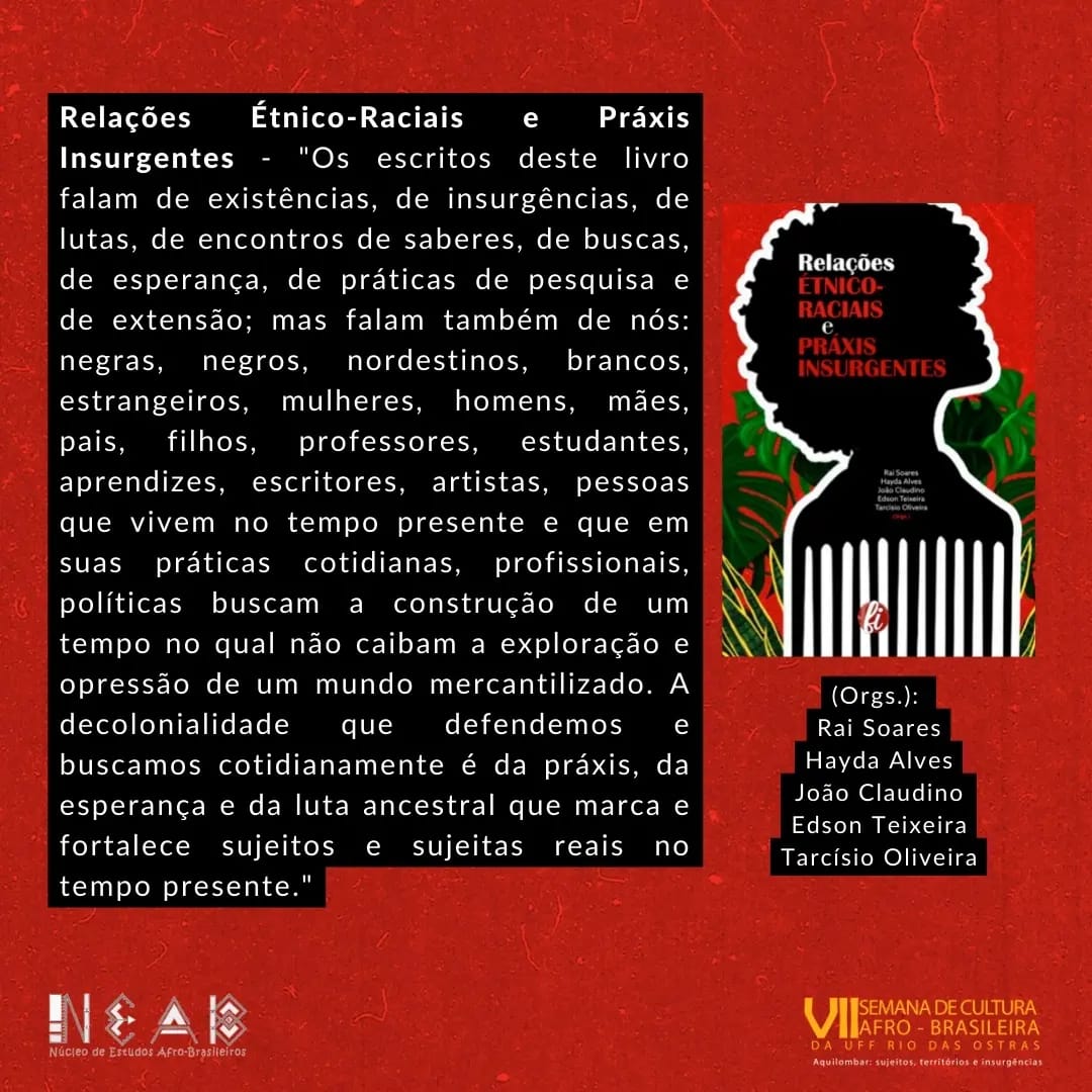 Relações Étnico-Raciais e Práxis Insurgentes, autores Rai Soares, Hayda Alves, João Claudino, Edson Teixeira e Tarcísio Oliveira;