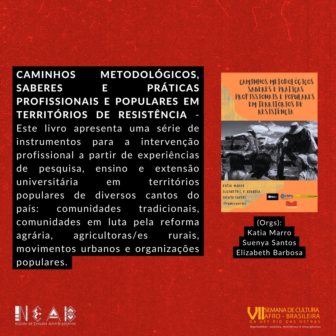 Caminhos Metodológicos, Saberes e Práticas Profissionais e Populares em Territórios de Resistência , autores Kátia Marro, Suenya Santos e Elizabeth Barbosa.