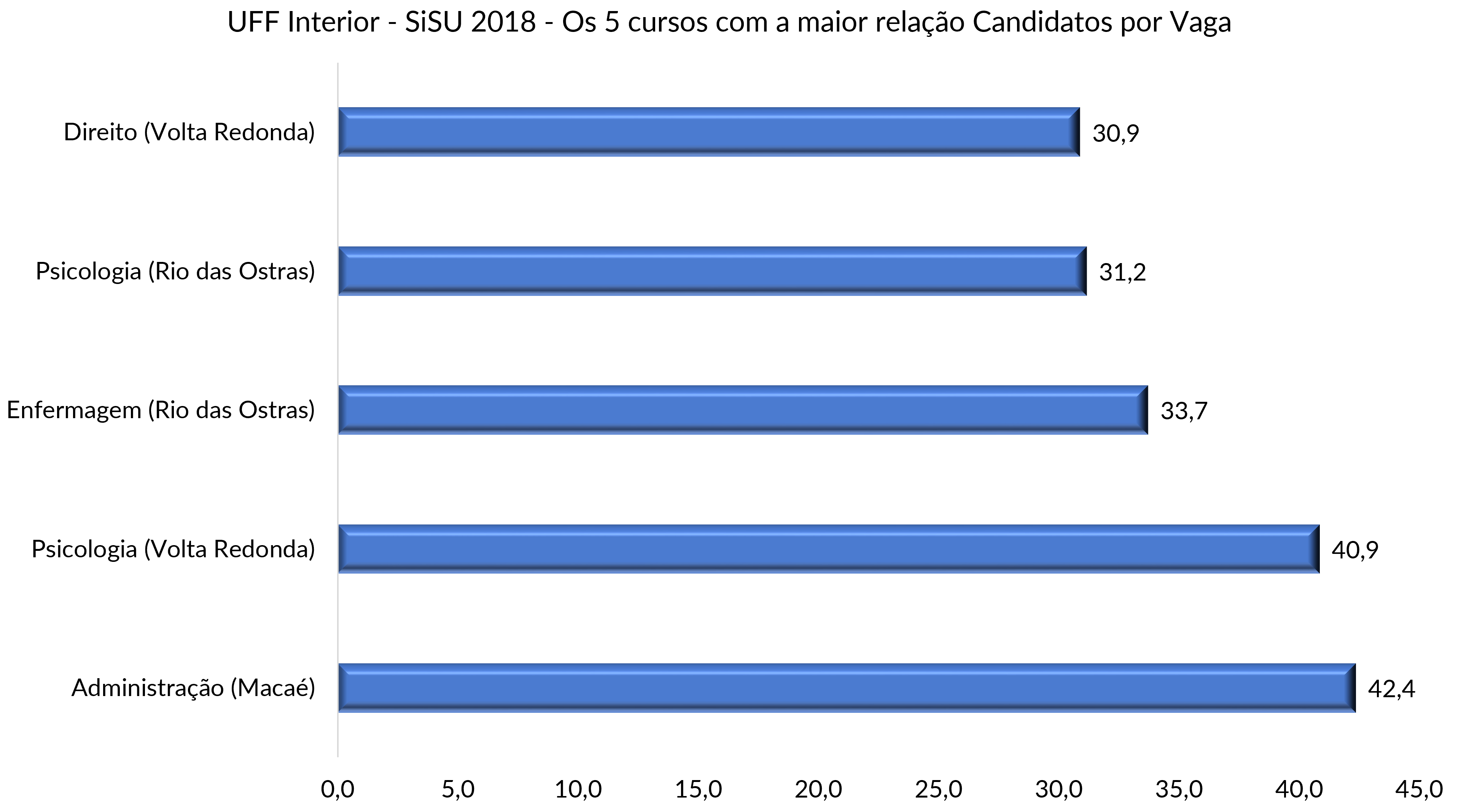 | No interior, os cursos mais procurados foram Administração em Macaé, Psicologia em Volta Redonda e Enfermagem em Rio das Ostras. |